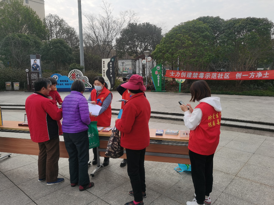 活动中,禁毒社工及禁毒志愿者一边向社区居民发放禁毒宣传单页,一边细心地向居民讲解毒品知识,并以有奖问答的形式激发居民参与热情,引导居民学习上海市禁毒条例。通过陈列常见毒品仿真样品和伪装毒品,帮助居民进一步了解毒品,学会辨识毒品。