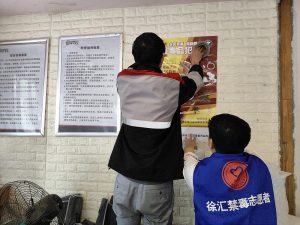 禁毒专职干部李刚提醒从业人员在工作中要严格落实实名登记、验视检查、过机安检等制度,若发现涉毒可疑物品要及时向公安机关举报,并发放了禁毒宣传海报。禁毒社工与快递员还将禁毒海报张贴在了快递站点醒目位置,起到时刻警醒的作用。