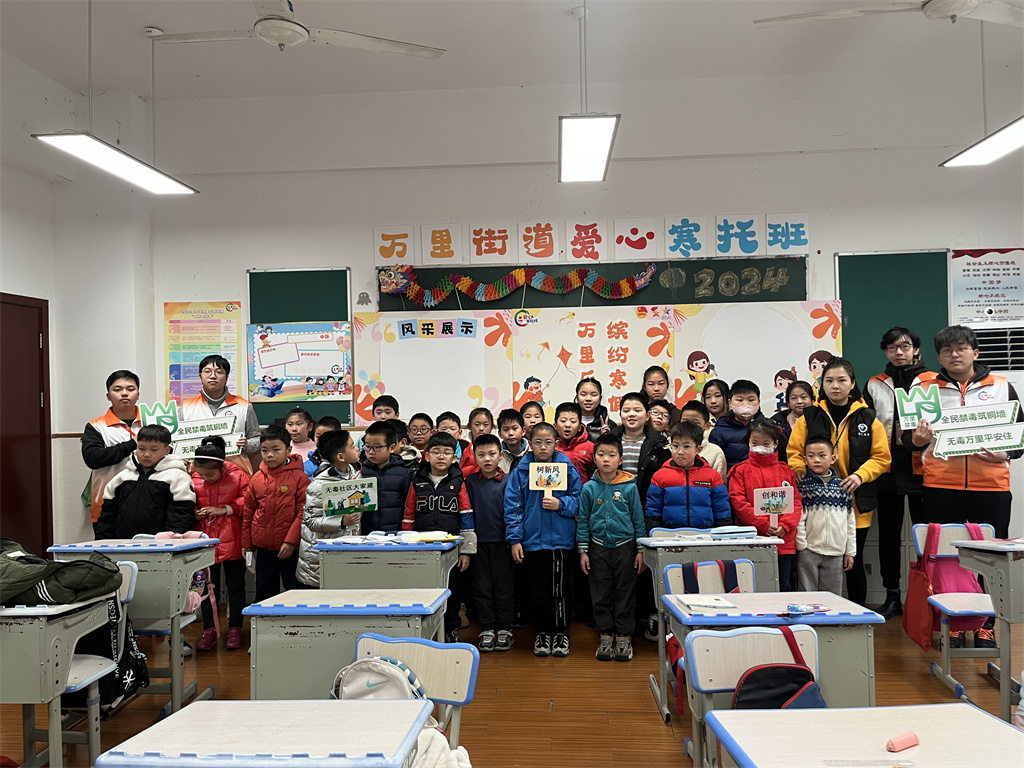 为扎实推进寒假期间在校学生的毒品预防教育宣传工作,增强青少年群体识毒、防毒和拒毒的意识与能力,引导树立正确的价值观、人生观和世界观,营造一个快乐、无毒的假期氛围。1月22日,万里街道禁毒办组织辖区禁毒社工、禁毒志愿者在万里城实验学校为爱心寒托班的学生们开展了禁毒主题教育宣传活动。