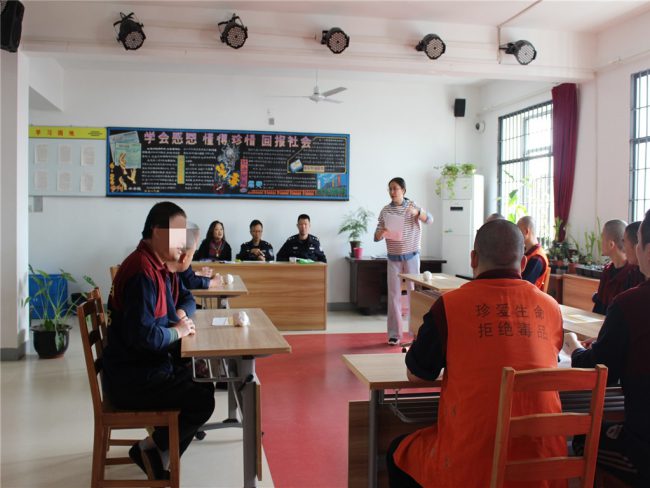 2019年10月31日上午,上海市强制隔离戒毒所的陈凌、沈勤两位所长、自强宝山工作站的李桢站长对驻所社工新尝试的团康活动“意面搭高”进行了指导。