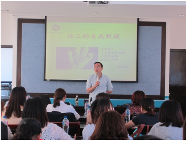 2019年10月10日,自强崇明工作站组织全体社工在崇明社区帮教服务中心5楼会议室开展“社工的心理健康和自我照顾”为主题的专题培训,特邀请市自强总社干事陈志超老师主讲。