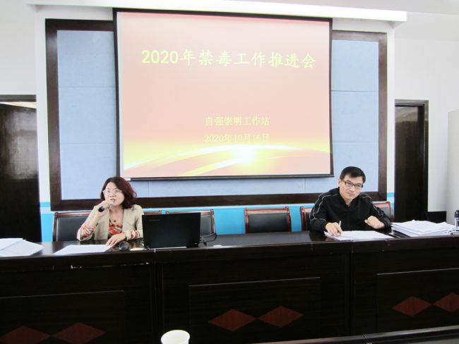 2020年10月16日,自强崇明工作站组织全体禁毒社工在崇明社区帮教服务中心会议室召开禁毒工作推进会暨社工业务培训。