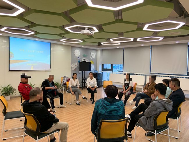 2020年10月19日下午,自强宝山工作站吴淞社工点禁毒社工组织七名服务对象在吴淞综治中心集中教育室开展“调整心态再出发”康复小组第五节活动,