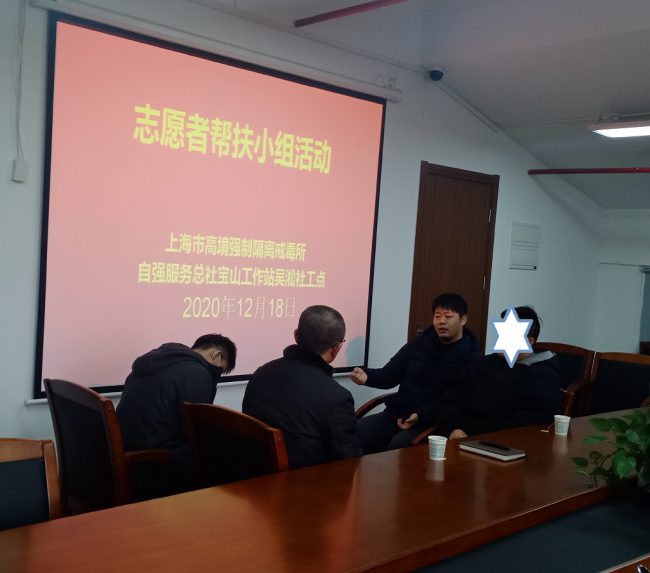 2020年12月17日下午,上海市夏阳强制隔离戒毒所内,自强总社督导主任曹霞老师、青浦工作站禁毒社工余戈与八位组员们一起开展了以认知行为理论为主要理论依据的“我知我行”药物滥用人员康复小组第四节线上活动。