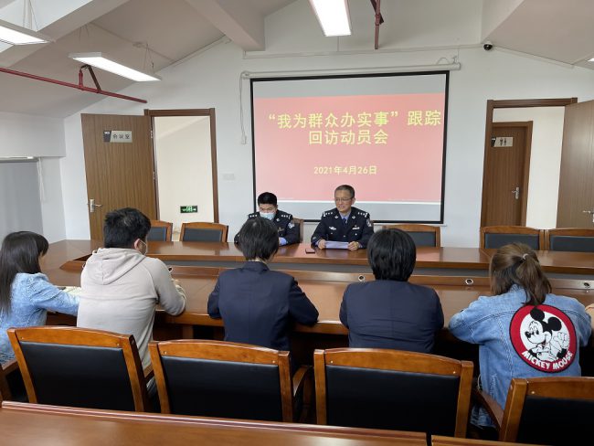 2021年4月26日下午,高境强制隔离戒毒所社区戒毒康复指导站主任戴文祥和民警沈煜黄到自强宝山工作站吴淞社工点,与吴淞禁毒社工进行一场“我为群众办实事”跟踪回访动员会。