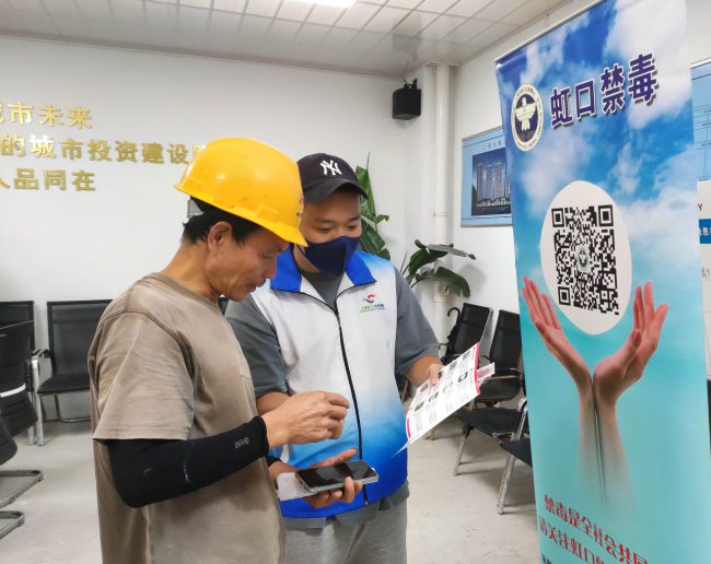 9月14日上午,虹口区禁毒办组织禁毒社工联合第三方检测机构来到嘉兴路街道中铁建设集团有限公司华东分公司第三十七项目部,开展建筑工地从业人群毛发检测工作。