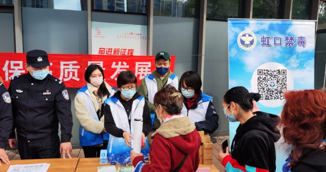 11月23日上午,虹口区嘉兴路街道平安办组织禁毒、安全、司法等部门在和平公园重新开园之际,开展一场以禁毒、反诈、安全、法治为主题的综合平安大型宣传活动。