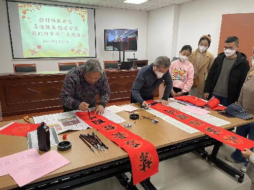 在2023年春节到来之际,嘉定区徐行镇禁毒社工组织禁毒志愿者们联合书法老师在徐行社区居委会现场为辖区居民手写春联,传递禁毒知识,弘扬优秀传统文化,开展禁毒宣传系列活动,为营造良好的春节氛围,全面助力创建全国禁毒示范城市和无毒社区。