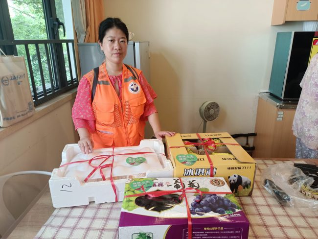 8月4日上午,自强虹口工作站党支部携手党建联建单位大桶大足浴和禁毒志愿者带着夏季慰问品前往凉城新村辖区内银享恬苑长者照护之家上门看望老人。