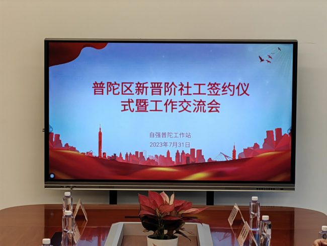 绿树阴浓夏日长,楼台倒影入池塘。7月31日,普陀工作站新晋阶社工签约仪式暨工作交流会圆满举行,郭华等三名社工正…