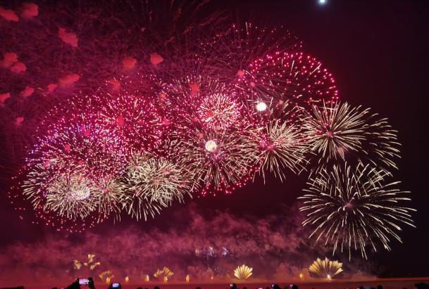 上海湾区·金山城市沙滩上演了丹麦专题和希腊专题的烟火盛宴,数十道五彩斑斓的火花从海岸线上一跃而起,划过夜空,翩…
