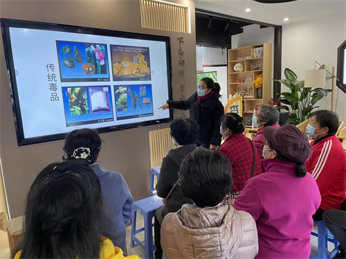 为引导辖区居民正确认识毒品的危害,切实提升自身识毒、拒毒、防毒的意识和能力,筑牢社区禁毒安全防线。12月13日,自强嘉定工作站嘉定镇街道禁毒社工与禁毒志愿者李阿姨一起来到辖区内嘉定环城河银杏园党群服务站,结合“益小时”微公益便民服务活动,为居民朋友们开展禁毒宣传。