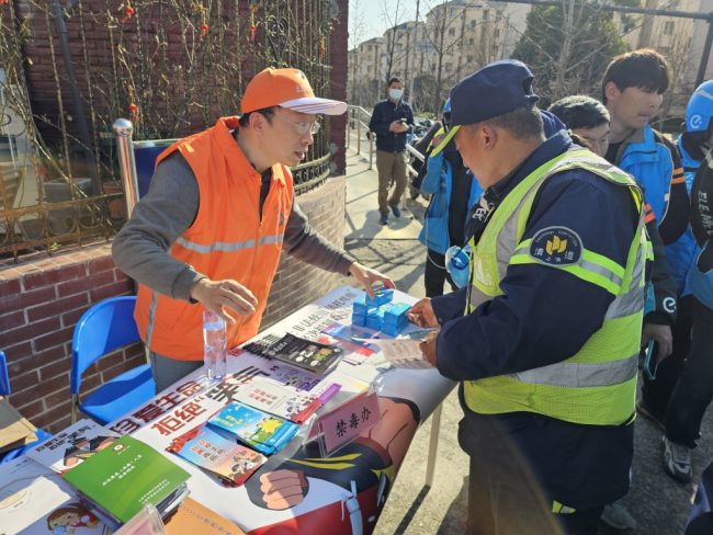 2024年1月17日下午,杨浦区新江湾城街道总工会主办、平安办协办的“服务新业态、迎春送温暖”政立路片区“娘家人服务站”新春主题活动在政云路200号小广场上隆重召开。自强杨浦工作站新江湾城社工点禁毒社工会同平安办工作人员积极行动,早早布置好宣传场地,迎候忙碌一整年的外卖员、快递员以及片区环卫工人的到来。