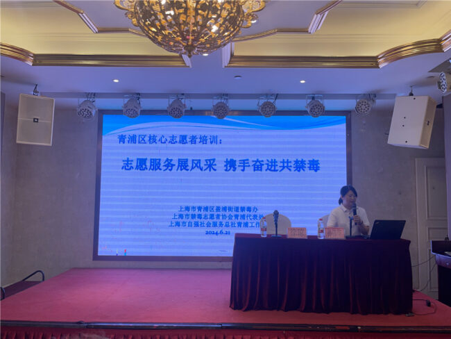 6月21日下午,盈浦街道禁毒办、上海市禁毒志愿者协会青浦代表处、自强青浦工作站组织盈浦街道禁毒志愿者服务队部分核心志愿者于青安路58号维也纳酒店会议厅开展禁毒志愿者知识相关培训,共有禁毒志愿者、禁毒社工40余人参加。