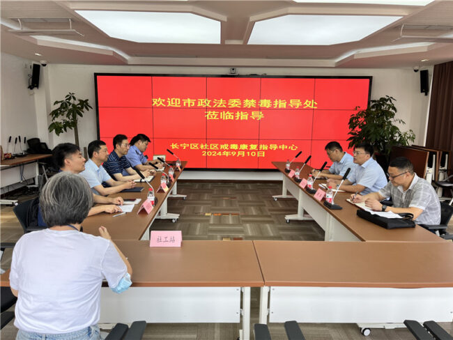 2024年9月10日上午,市委政法委禁毒指导处副处长王宝杰、四级调研员顾华、上海市自强社会服务总社总干事王雷,来到长宁区社区戒毒康复指导中心调研指导长宁区禁吸戒毒基础年和社戒社康标准化建设工作。区委政法委副书记、区禁毒办主任褚凯华,区委政法委副书记廖波参加。
