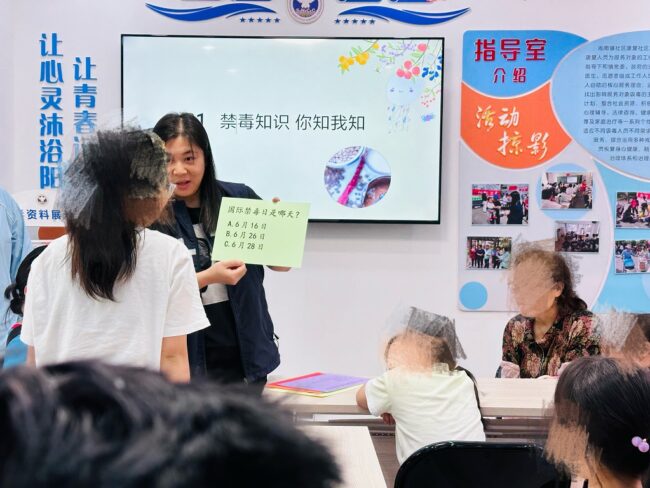 为了进一步提高辖区内居民们的防毒、拒毒能力,10月11日上午,黄浦工作站打浦桥禁毒社工组来到辖区内的锦海居委开展了一场主题为“入社区普禁毒,提高禁毒意识”的宣传活动。