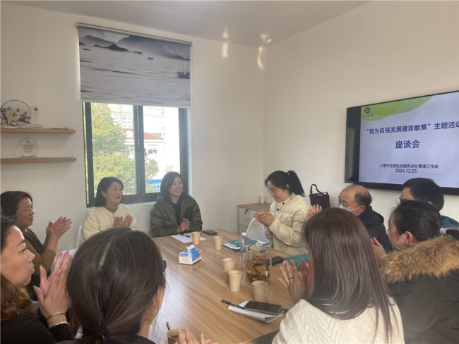 青浦工作站召开点组长工作例会暨建言献策座谈会(青浦 胡平萍)各区动态, 青浦区青 浦2025年1月27日12月25日下午青浦工作站召开点组长工作例会暨我为自强发展建言献策座谈会,上海市自强社会服务总社宣传干事金惠珠出席座谈会,各街镇社工点点长及站务人员共18人参加本次会议。