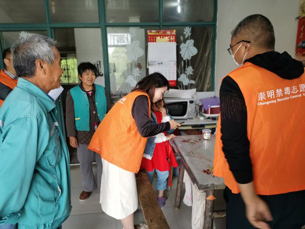 自强虹口工作站禁毒社工深入社区,热情地向辖区内来往的居民开展禁毒宣传