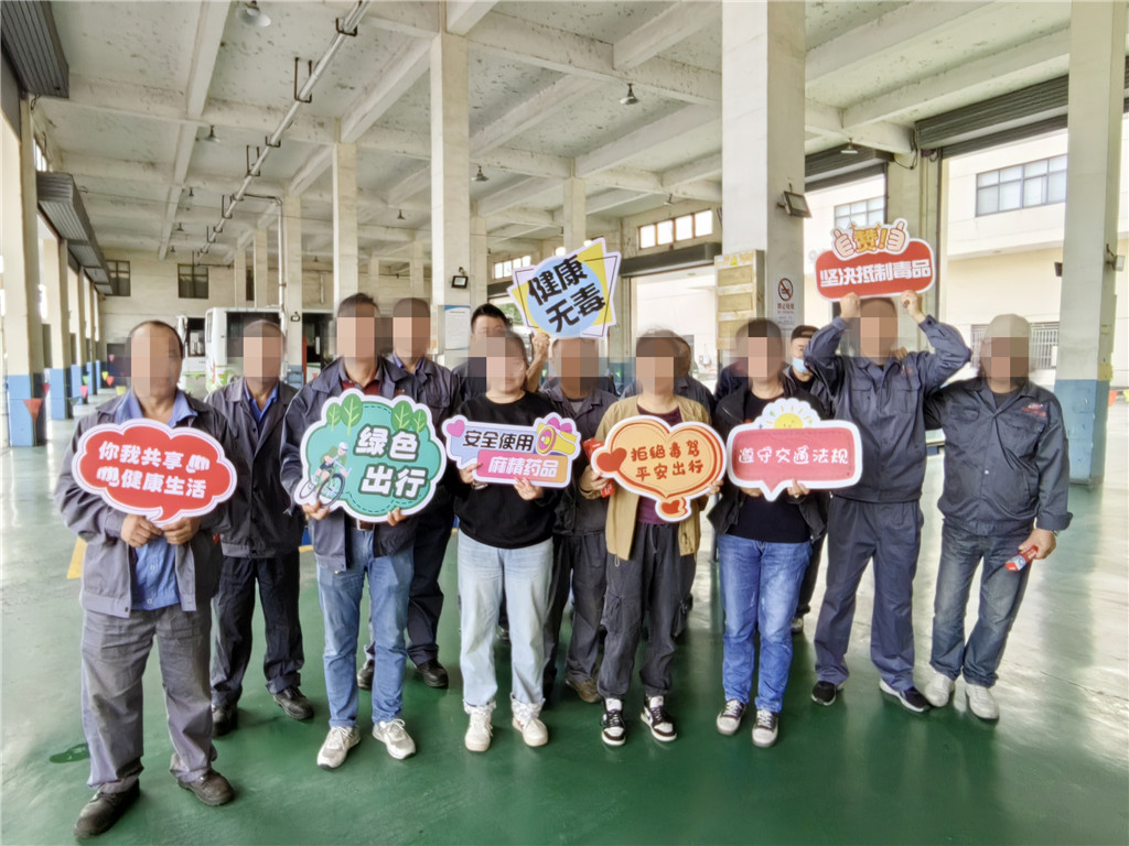 近日,在青浦区委政法委、青浦公交公司的大力支持下,自强青浦工作站“家”油项目的子项目“绿色出行 健康无毒”社区活动之禁毒防毒,安全用药禁毒宣传在青浦公交公司修理厂举行,公交公司修理厂员工近40人参与了本次活动。