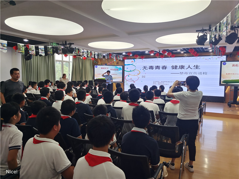 详情为深入推进青少年毒品预防教育,增强青少年禁毒意识,2023年6月30日上午,长宁区程家桥街道联合上海市未成年犯管教所与禁毒工作小组成员一起前往虹桥中学,开展了“无毒青春 健康人生”的宣传活动。