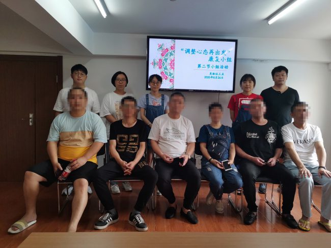 2020年8月20日上午,自强宝山工作站淞南社工点的8名禁毒社工带领10名服务对象在淞南九村一居委开展了一次“手牵手 诉心声”的社区活动。