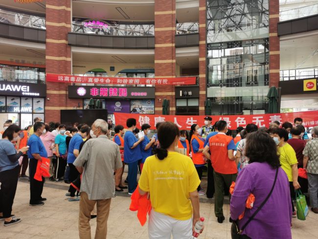 【宝山】抵制毒品 参与禁毒禁毒宣传宝 山2020年7月25日自强宝山工作站罗泾社工点禁毒社工与禁毒志愿者来到宝祥新苑,联合派出所、计生、居委等部门在小区广场上开展了主题为“抵制毒品 参与禁毒”的禁毒宣传活动。