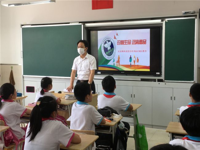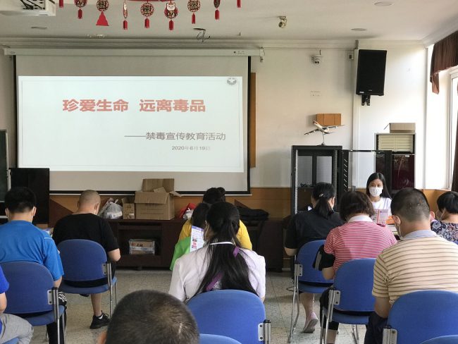 【宝山】禁毒防疫 志愿者在行动禁毒宣传宝 山2020年7月25日国际禁毒日前夕,自强宝山工作站淞南社工点禁毒社工携同禁毒志愿者走进了淞南镇阳光家园,为阳光家园的全体学员开展了“珍爱生命,远离毒品”为主题的禁毒宣传教育活动。