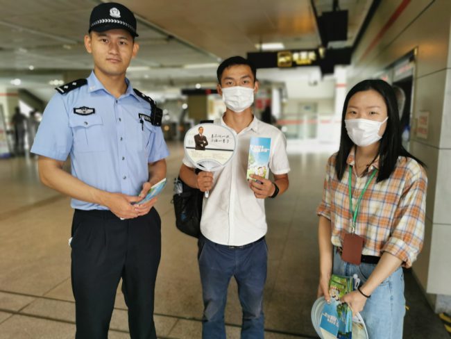 【宝山】禁毒宣传 社会安宁禁毒宣传宝 山2020年7月25日2020年6月22日,在杨行镇禁毒专职干部组织下,自强宝山工作站杨行社工点禁毒社工、社区民警,以及志愿者前往宝启公寓和附近的宝安公路地铁站进行禁毒宣传。