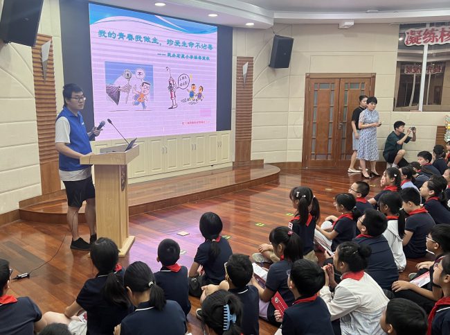 9月12日下午,自强虹口曲阳路社工点禁毒社工会同禁毒志愿者联合虹口检察院、高境强制隔离戒毒所民警一同来到民办宏星小学,开展了一场主题为“我的青春我做主 珍爱生命不沾毒”的校园青少年毒品预防教育宣传活动。