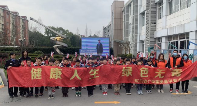 2月17日下午,虹口区广中路街道平安办组织禁毒社工联合上海市女子强制隔离戒毒所的民警一起走进辖区内的广灵路小学和第五十二中学开展“开学禁毒第一课”活动。