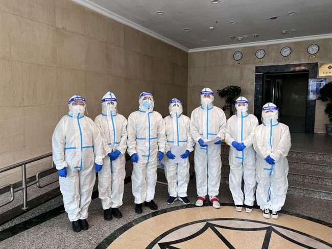 2022年3月26日,自强虹口北外滩街道全体禁毒社工身着“大白”戎装、踏上“抗疫”征途,为辖区内东泰大厦及恒升半岛国际中心大厦里的居民发放新冠病毒抗原检测盒,并做好回收及统计工作。