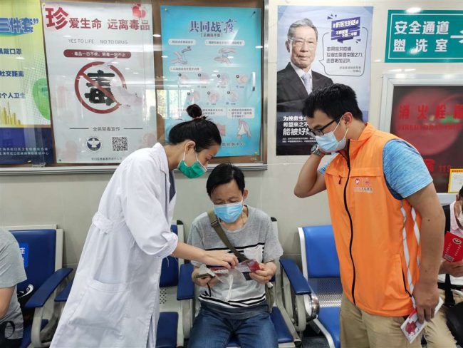 为了迎接626国际禁毒日的到来,更好地落实禁毒宣传工作任务,推动辖区内禁毒教育宣传工作向纵深发展,6月22日上午,四川北路街道禁毒社工和禁毒志愿者,在四川北路社区卫生服务中心开展了以“珍爱生命,远离毒品”为主题的宣传活动。