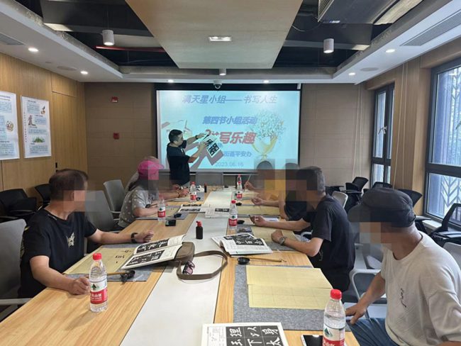 6月16日下午,黄浦工作站打浦桥禁毒社工点本年度的第四节小组活动在综治中心会议室开展。本次活动的主题为“书写乐趣”,主要目的是通过学习书法陶冶情操、提升自我修养,共7名组员参加。