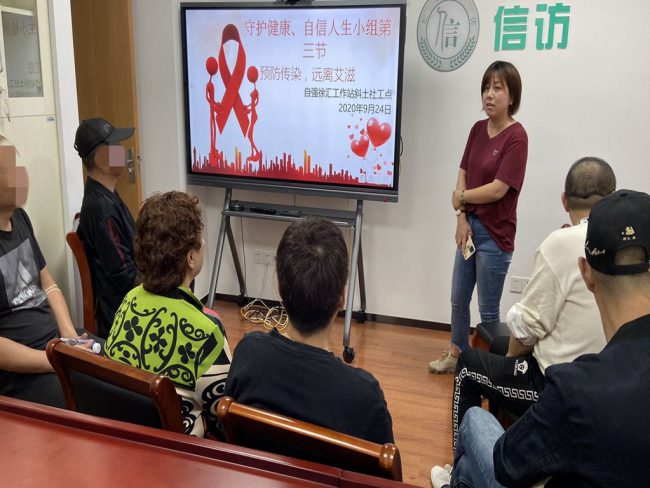 本次小组活动的主题是“预防传染,远离艾滋”,首先,主带社工通过PPT告诉小组组员,艾滋病的科学知识,着重讲述了传媒途径“性行为”“血液传播”“母婴传播”及其“公用针筒”的相关概率。