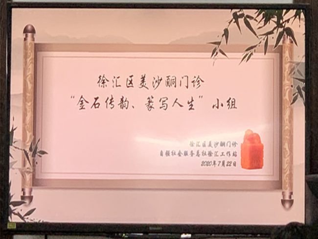 自强徐汇工作站与区美沙酮门诊联合开展“金石传韵、篆写人生”小组活动,活动招募了10名美沙酮服用人员,通过传授篆刻知识,培养他们的艺术爱好,提升戒毒信心。经过精心准备,2020年7月22日在徐汇区美沙酮门诊开展了第一次活动,活动特邀区书法家协会会员吴正安老师授课。