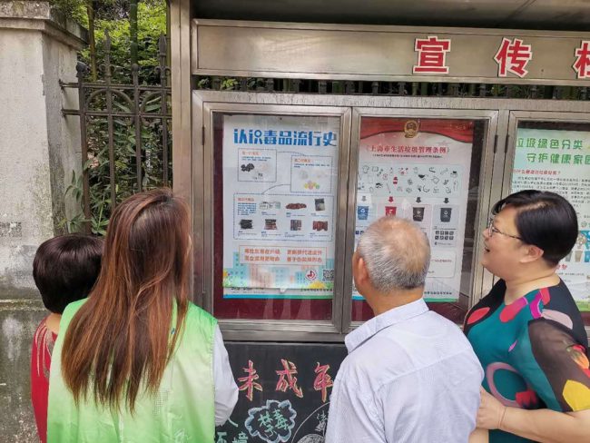 在“6.26”国际禁毒日来临之际,禁毒社工从杨浦工作站领回上海市禁毒科普教育馆的宣传海报,社工随后将海报下发到了各个居委,将海报张贴在小区的宣传栏中,吸引小区居民驻足观看。