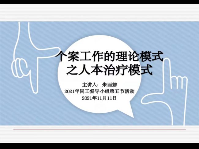 【团体督导】觉察真实自我 实现自我成长(闵行朱丽娜)各区动态, 闵行区闵 行2021年11月22日为进一步规范社会工作个案工作流程,提升一线社工个案实务工作理论模式的运用能力,2021年11月11日下午,华漕…