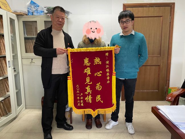 近日,浦江镇社区戒毒人员卢某母亲将一面绣有“忠于职守,尽职尽责”字样的锦旗送到了社工手里,感谢禁毒社工长期以来…