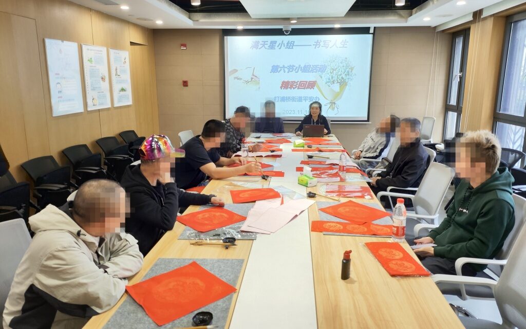 11月10日下午,黄浦工作站打浦桥禁毒社工组在综治中心会议室开展了“满天星小组-书写人生”的第六节活动,共7名组员参加。本次活动的主题为“精彩回顾”,主要目标是总结全年小组活动的收获并书写春节对联,展望新的一年。