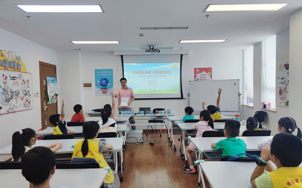 详情为了持续依托暑假有利条件,以长宁区仙霞街道创建禁毒示范社区为契机,扎实推进青少年平安预防教育,2023年7月28日下午,仙霞街道平安办联合禁毒社工再次来到辖区内天山二中,为二期暑托班的同学开展暑期禁毒宣传讲座。讲座旨在向同学们开展禁毒知识宣传,使他们从小增强对毒品的了解和防范意识。
