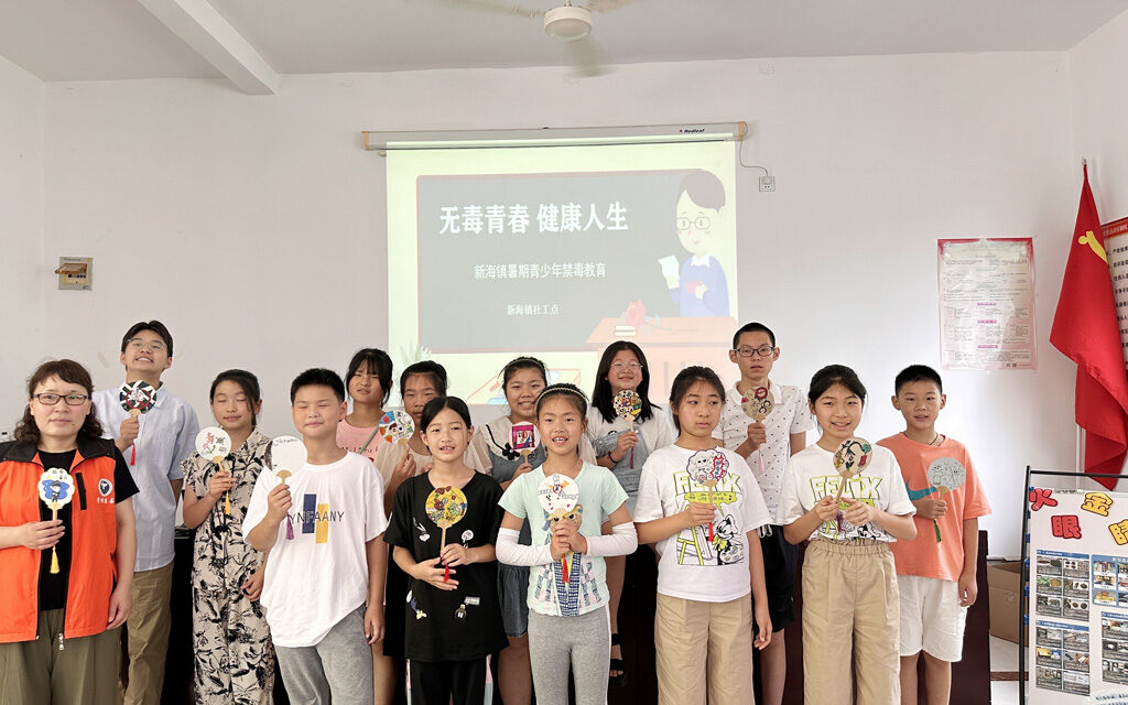 详情为丰富辖区青少年的暑期生活,增强识毒、防毒、拒毒意识,筑牢防毒禁毒思想防线,为他们的健康成长护航,7月18日下午,在辖区禁毒办的支持下,新海镇禁毒社工与新海二村联合开展“无毒青春,健康人生”暑期青少年禁毒活动。