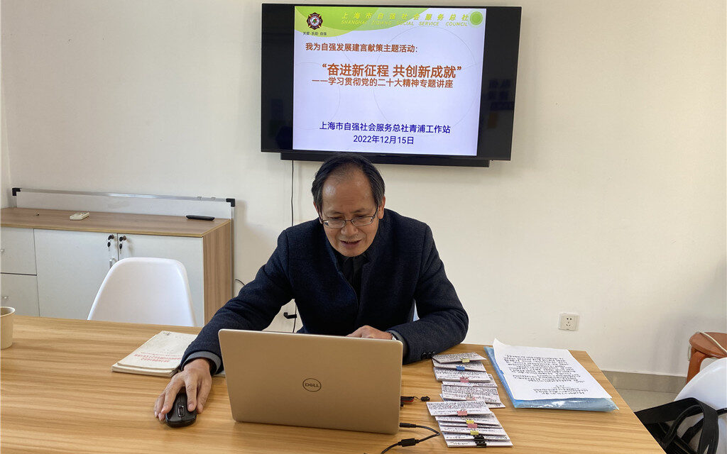 详情为了认真学习宣传贯彻党的二十大精神,推进专业发展,加强队伍建设,促进禁毒社会工作服务拓展和创新,青浦工作站于2022年12月15日在腾讯会议平台开展“奋进新征程共创新成就”学习贯彻党的二十大精神专题讲座暨“我为自强发展进言献策主题活动”交流培训会,全体社工共计55人参加。