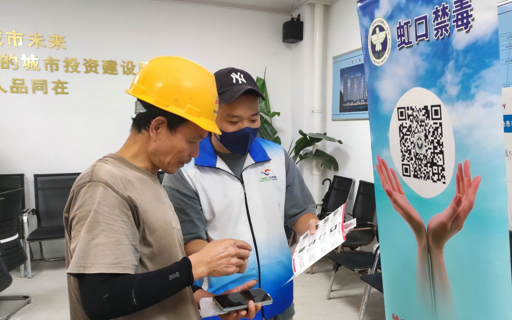 9月14日上午,虹口区禁毒办组织禁毒社工联合第三方检测机构来到嘉兴路街道中铁建设集团有限公司华东分公司第三十七项目部,开展建筑工地从业人群毛发检测工作。