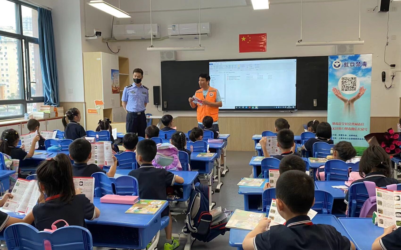 详情9月19日上午,自强虹口嘉兴路街道的社工、“嘉翼”未成年人禁毒宣传志愿者联手嘉兴路派出所吴警官一起来到虹口区新宏星小学开展2024年秋季学校禁毒法制安全教育“开学第一课”活动。