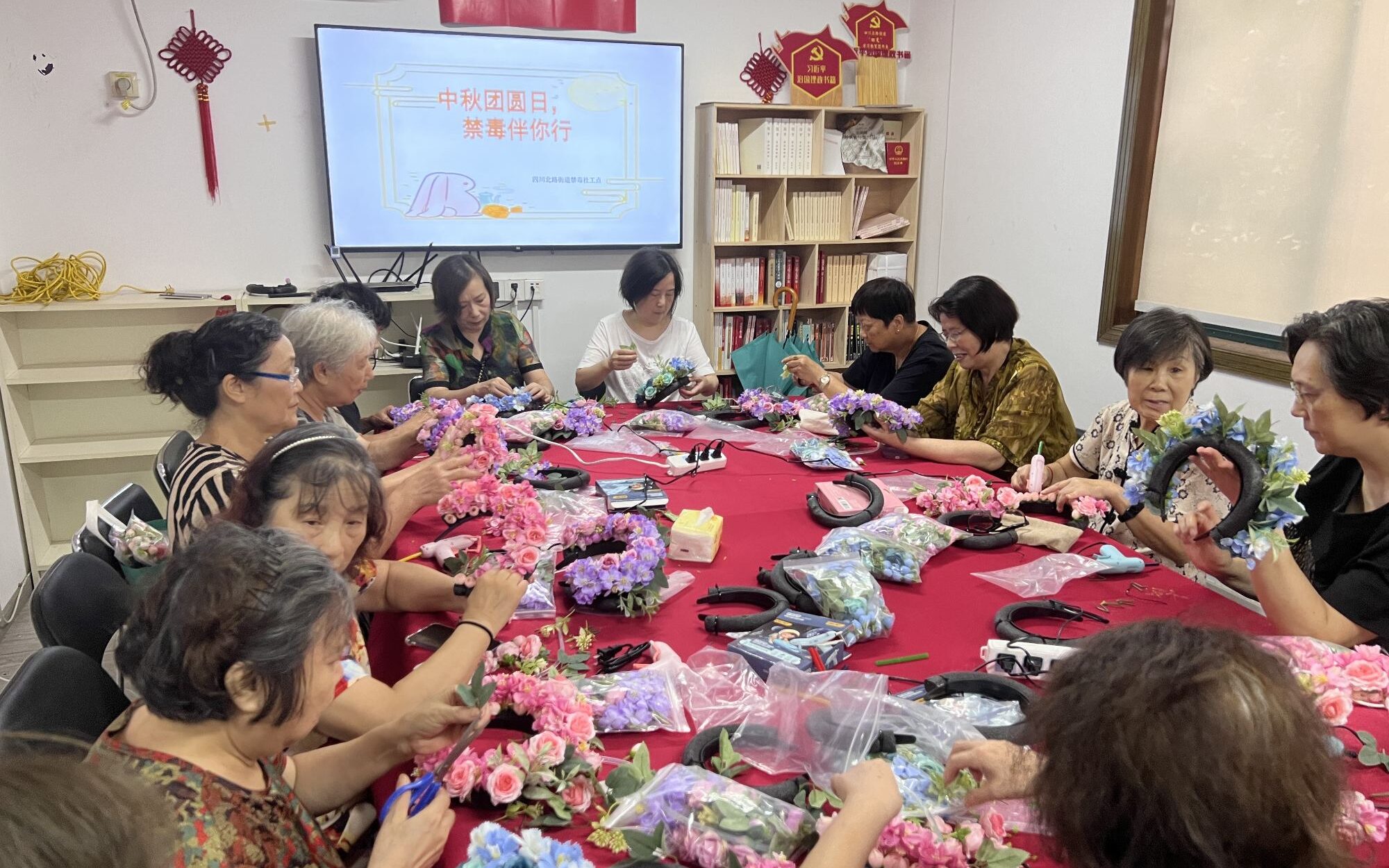 详情9月10日,自强虹口四川北路街道的禁毒社工与虬江居委联合举办了“赏簪花、宣禁毒、迎中秋”活动,对前来参与簪花DIY活动的居民们进行了禁毒宣讲教育。