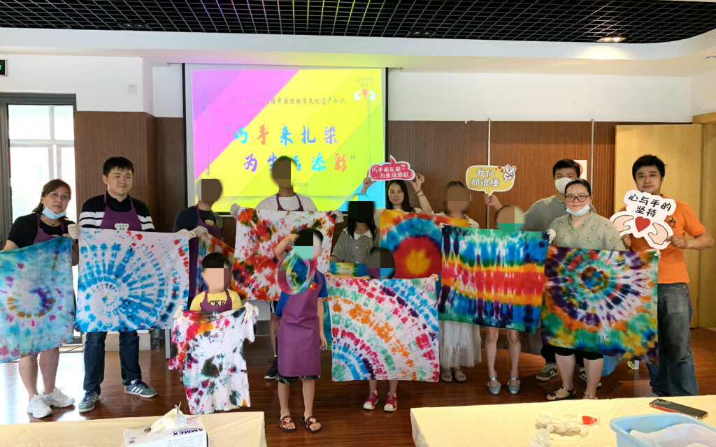 详情由上海市帮困互助基金会资助,上海市自强社会服务总社徐汇工作站实施的“心与手的坚持”项目“活成一束光”子项目“不忘初心,传播中国非物质文化遗产知识”之“巧手来扎染,为生活添彩”第一次活动在田林街道邻里汇开展。