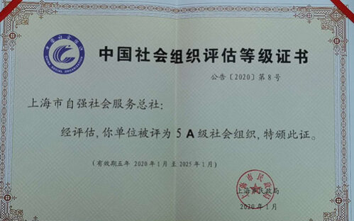 详情根据民政部《社会组织评估管理办法》,经自评、初审、第三方机构实地评估、上海市社会组织评估委员会审定,上海市自强社会服务总社通过5A级复评,再次获评为“5A级社会组织”。