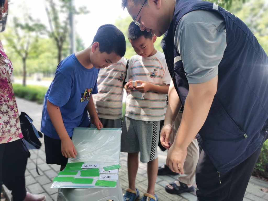 沿途设置了多个“游戏打卡点”成为活动的亮点,家长与孩子需携手完成趣味小游戏挑战“毒品名字我知道”“秘密接头任务”“毒品对对碰”等互动环节,让孩子们在玩乐中认识常见毒品的外形,也让家长在陪伴中加深对禁毒知识的理解。禁毒知识问答中简单易懂的题目,搭配社工的现场讲解,让禁毒知识潜移默化地融入每个人心中。不少家长表示:“这种方式比单纯说教有效多了!孩子不仅玩得开心,更在互动中把知识牢牢记在心里。”