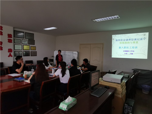 9月9日,工作站站长金育华和副站长薛冰莲就“员工手册”、“2019年工作要点”,助理督导卢瑜就“社会工作理念”展开培训。
