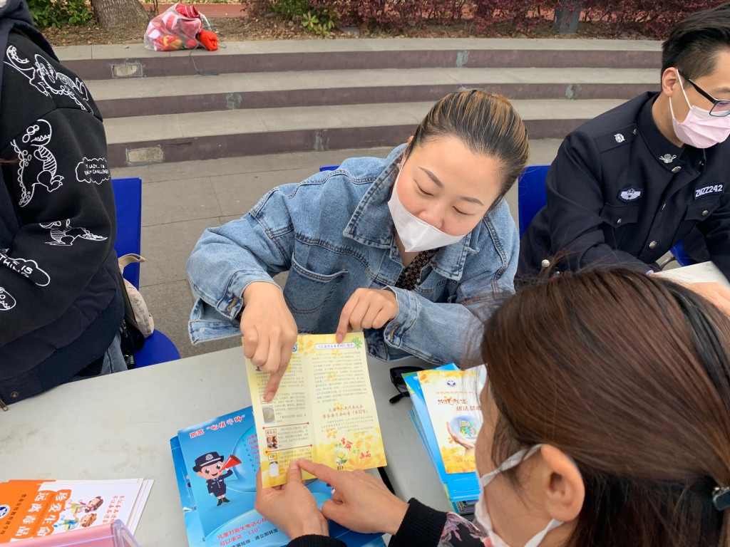 禁毒社工向来往的居民发放禁毒宣传手册,对于驻足观看禁毒展板的居民讲解毒品种类和禁毒知识,派出所民警采用法律条款与实际案例相结合的方法进行宣传,更加生动形象地讲解毒品对于居民自身以至于整个社区的危害和影响,倡导每位居民都要为社区安稳积极行动起来。